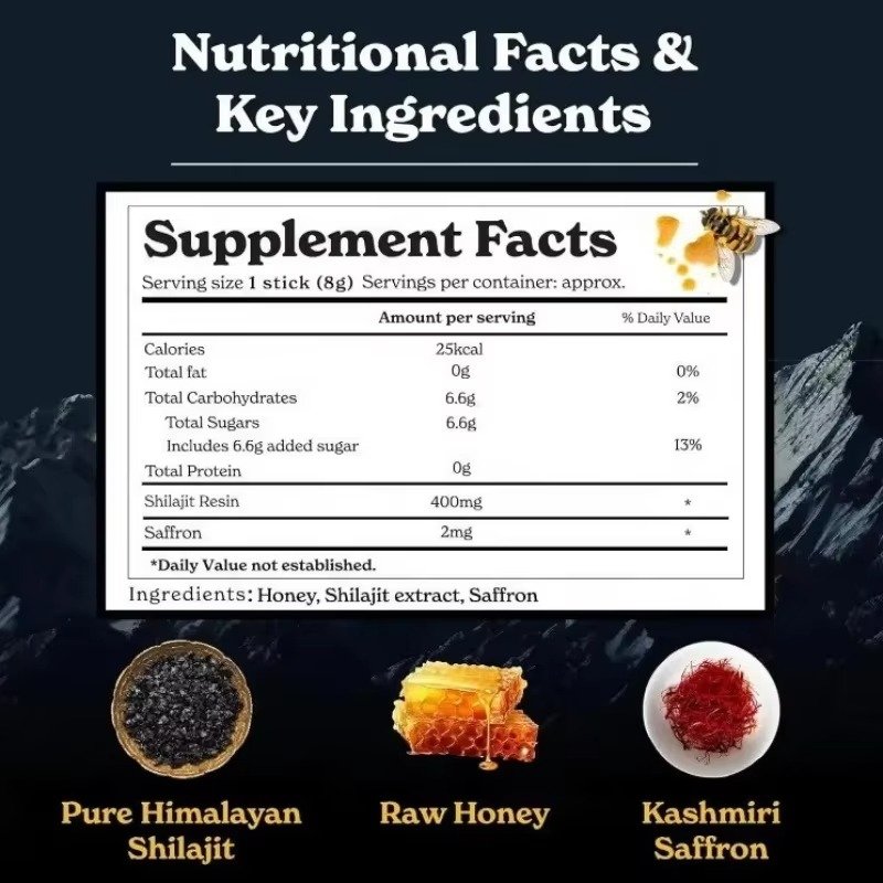 | Ingredients | Honey, Shilajit Extract, Saffron |