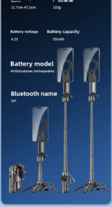 P15Mini-C Magnetic Selfie Stick Tripod with Portable Phone Stand and Remote
