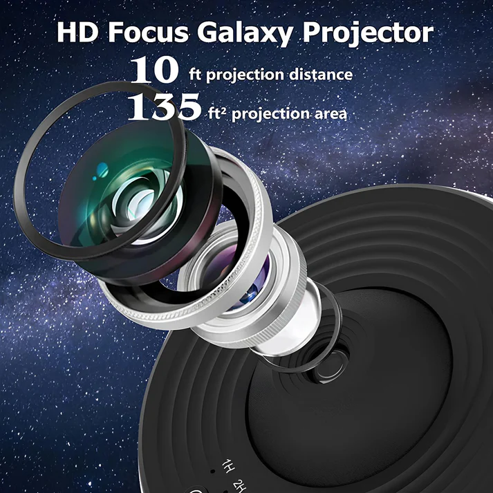 HD Galaxy Projector: 2023 new upgrade HD projection. Twist the top screw ring to adjust the focal length to fit the projection distance for clear imaging. Support up to 5M projection distance and 134㎡ projection area. Perfect for decorating rooms.