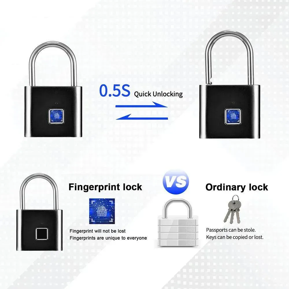 This is an intelligent fingerprint padlock, which can be unlocked only by fingerprints instead of keys. It is suitable for the security of doors, backpacks, suitcases and many kinds of lockers in public places.