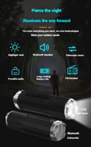 এই ডিভাইসটিতে রয়েছে হাই-পাওয়ার জুমেবল LED লাইট, যার মাধ্যমে দূরের আলো ফোকাস করা বা কাছাকাছি আলো ছড়িয়ে দেওয়া সহজ। পাশাপাশি এর Bluetooth স্পিকার ক্লিয়ার সাউন্ড ও বেস দেয়, যা আউটডোর বা ইনডোর—দুই ক্ষেত্রেই পারফেক্ট।