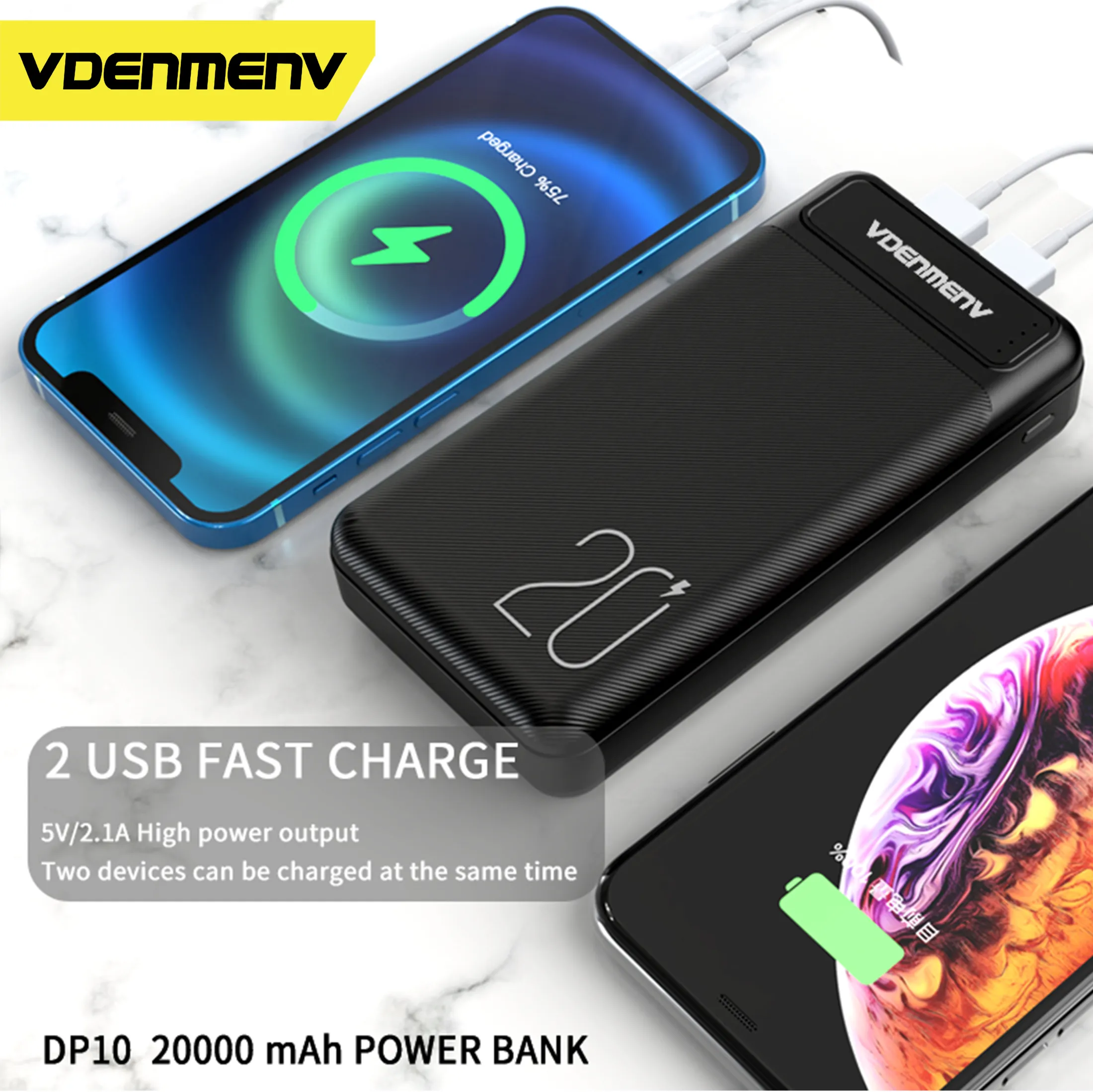 Introducing the VDENMENV DP10 Dual USB And Type C 20000mAh Power bank. With a 5V 2.1A output, this power bank ensures efficient charging for your smartphones and tablets. Equipped with dual USB and Type C ports, it offers versatility and convenience. Whether you’re on the go or traveling, this power bank provides a high-capacity battery to keep your devices powered up. Stay connected and powered throughout the day with the VDENMENV DP10 Power bank.