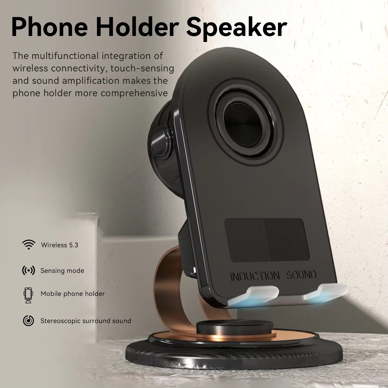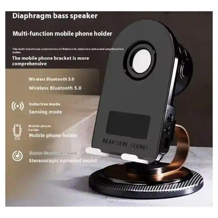 Wireless Induction Speaker with Cell Phone Stand – 5W Stereo Sound